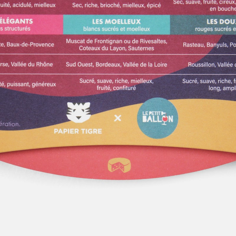 Sur le côté du disque délivre une classification des vins selon leurs profils gustatifs. Ce classement est conçu en collaboration avec Le Petit Ballon. Il aide à repérer les vins fruités, secs, puissants ou légers.